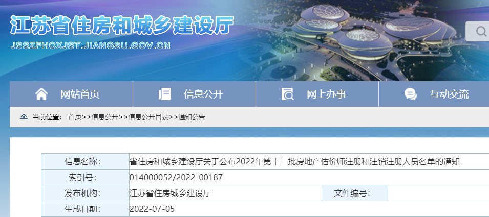 江蘇關(guān)于公布2022年第十二批房地產(chǎn)估價(jià)師注冊和注銷(xiāo)注冊人員名單通知