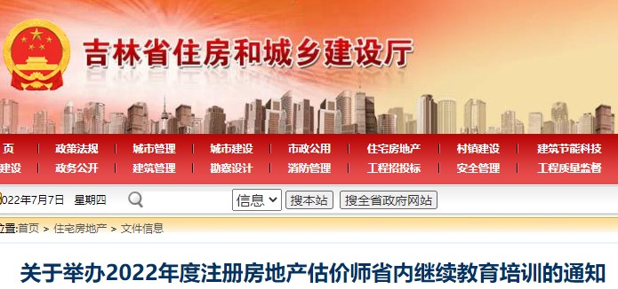 吉林省?關(guān)于舉辦2022年度注冊房地產(chǎn)估價(jià)師省內繼續教育培訓的通知