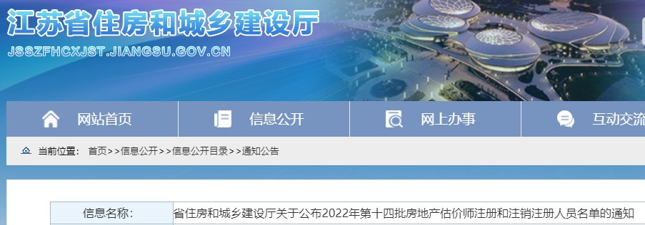 江蘇關(guān)于公布2022年第十四批房地產(chǎn)估價(jià)師注冊和注銷(xiāo)注冊人員名單通知