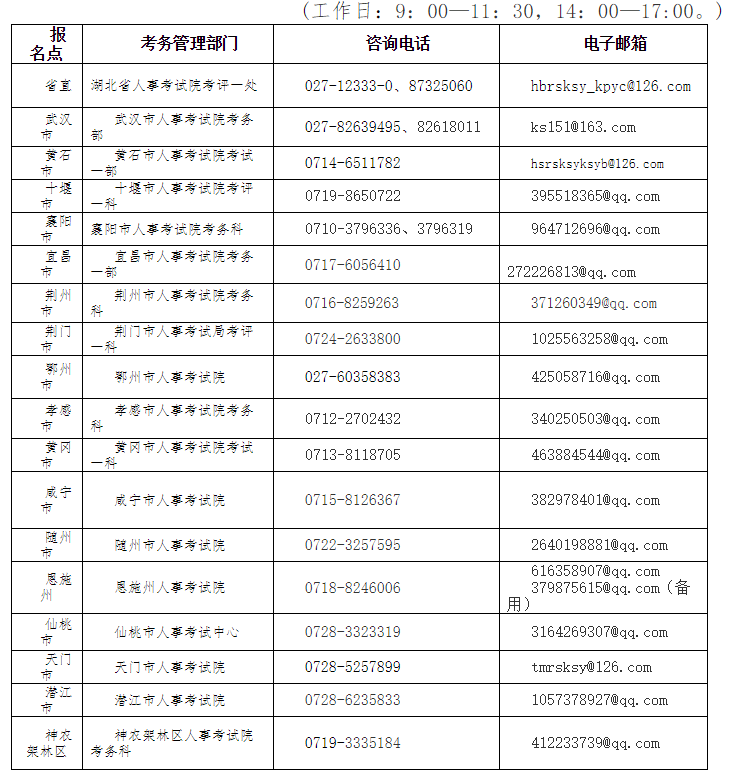 湖北省人事考試機構咨詢(xún)電話(huà)及電子郵箱