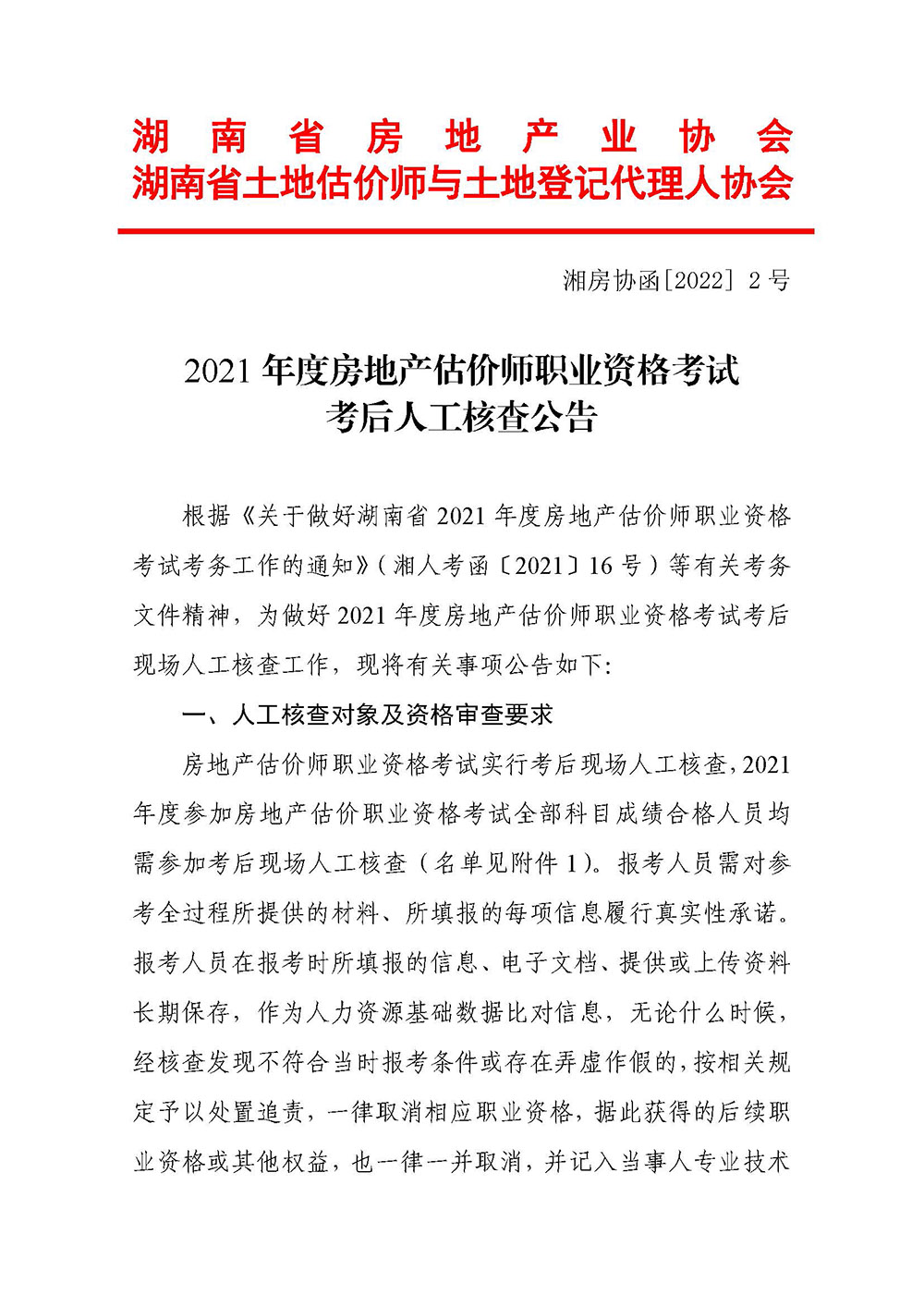湖南2021年度房地產(chǎn)估價(jià)師職業(yè)資格考試考后人工核查公告