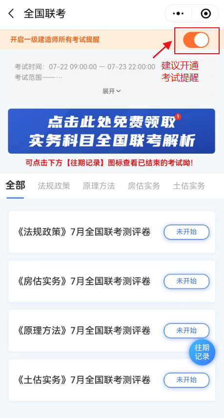 建議開(kāi)通考試提醒,避免錯過(guò)房地產(chǎn)估價(jià)師考試。