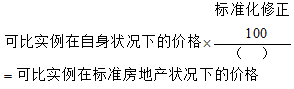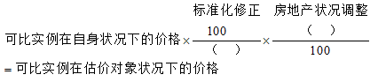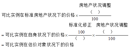 第二步,將可比實(shí)例在標準房地產(chǎn)狀況下的價(jià)格調整為在估價(jià)對象狀況下的價(jià)格,用公式表達為: