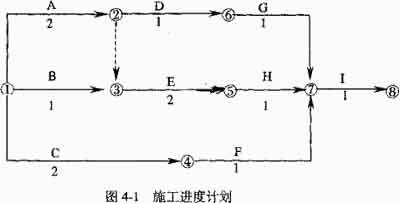 四、某工程,施工單位按招標文件中提供的工程量清單作出報價(jià)(表4-1)o施工合同約定:工程預付款為合同總價(jià)的20%,從工程進(jìn)度款累計總額達到合同總價(jià) 10%的月份開(kāi)始,按當月工程進(jìn)度款的30%扣回,扣完為止;施工過(guò)程中發(fā)生的設計變更,采用以直接費為計算基礎的全費用綜合單價(jià)計價(jià),間接費費率 10%,利潤率5%,計稅系數3.41%。經(jīng)項目監理機構批準的施工進(jìn)度計劃如圖4-1所示(時(shí)間單位:月)。