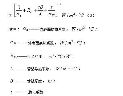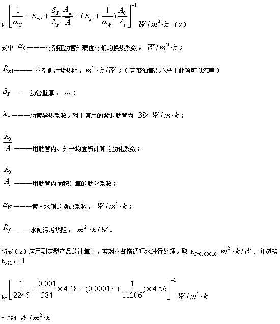 對于臥式肋管冷凝器,若以外表面為基準的水冷式冷凝器,其傳熱能力的計算應用下式: