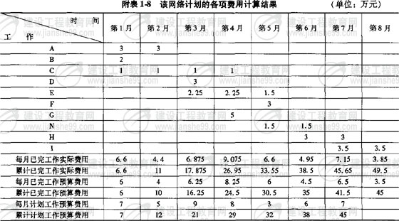 每項工作的每月工作量相同,通過(guò)計算得出每月的費用如下(見(jiàn)附表1-8)。(可以不畫(huà)此表)