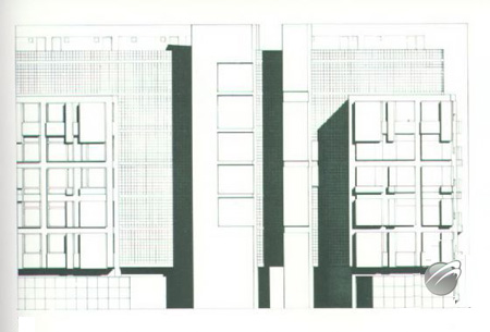 The design, in addition to meeting the very restrictive functional and financial requirements for social housing in Berlin, responds in a unique way to two general architectural problems: context and symbolism.