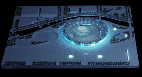 除屋頂外,體育場(chǎng)主體高度為45米,可以保證奧運綠地及組成部分不被遮擋,周邊還設計了一些廣場(chǎng)作為聚會(huì )和慶祝之用,同時(shí)還設計了能滿(mǎn)足賽時(shí)需要的交通設施。圓形的主體育場(chǎng)可以容納10萬(wàn)名觀(guān)眾觀(guān)看比賽,碗型的設計保證了良好的座席視線(xiàn),內部流線(xiàn)的設計避免了各種不同流線(xiàn)之間的交叉和沖突。奧運會(huì )之后,可以永久性的拆除南面2萬(wàn)個(gè)座位,使體育館容量變?yōu)?萬(wàn)人,并將騰出的空間改建為文化娛樂(lè )活動(dòng)的舞臺。