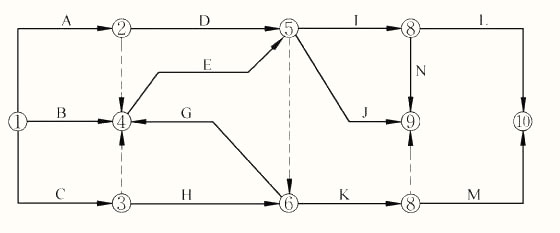 7、某分部工程雙代號網(wǎng)絡(luò )計劃如下圖所示,其作圖錯誤包括( )。