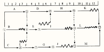 1、如圖所示時(shí)標網(wǎng)絡(luò )計劃中,如果工作B、E、J使用同一臺施工機械并順序施工,則在合理安排的前提下,實(shí)施B、E、J三項工作時(shí)的施工機械閑置時(shí)間( )天。