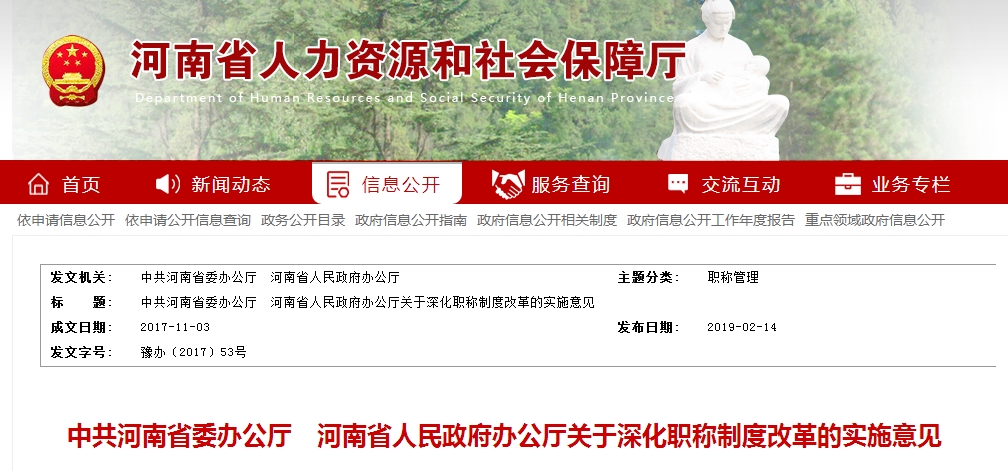 2019年2月14日,中共河南省委辦公廳發(fā)布《河南省人民政府辦公廳關(guān)于深化職稱(chēng)制度改革的實(shí)施意見(jiàn)》,強調和改革了多個(gè)內容,重要內容可總結為以下11項: