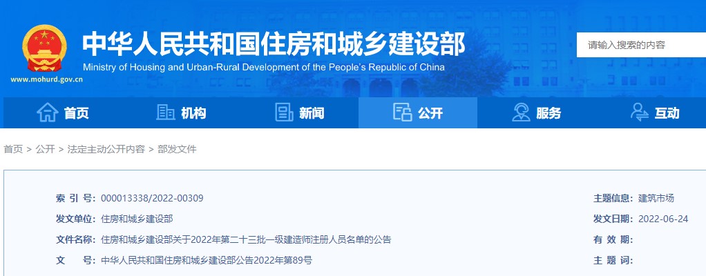 住建部關(guān)于2022年第二十三批 一級建造師注冊人員名單的公告