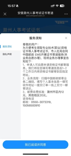 2、郵寄服務(wù)辦理流程:掃描中國(guó)郵政郵寄業(yè)務(wù)二維碼—填寫考生信息—核對(duì)考生證書信息—上傳考生本人手持身份證照片—填寫收件地址—系統(tǒng)自動(dòng)計(jì)費(fèi)—線上支付—郵寄送達(dá)。