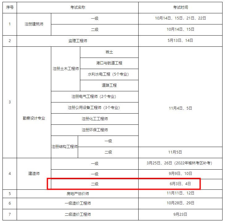 陜西2023年二級建造師考試時(shí)間:6月3、4日