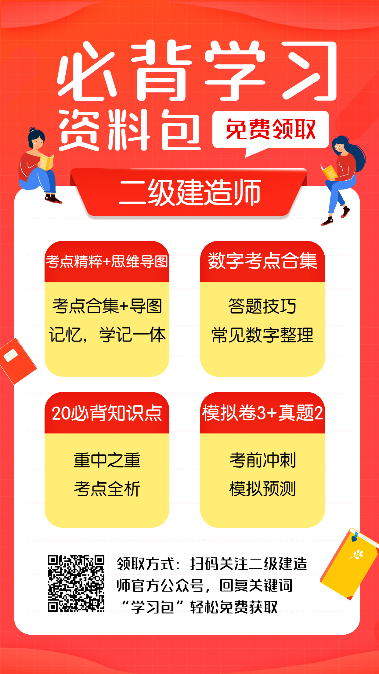 免費領(lǐng)取方式:掃描下方二維碼關(guān)注二級建造師官方公眾號,回復(fù)關(guān)鍵詞“學(xué)習(xí)包”或者點擊12.12活動,輕松免費獲取