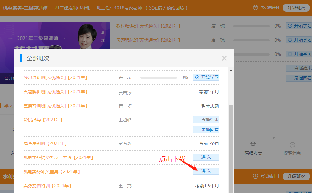 超值精品班學(xué)員也不要著(zhù)急,“我的網(wǎng)校我的家”點(diǎn)擊“班次升級”,可升級為高效實(shí)驗班、無(wú)憂(yōu)直達班,享受更多優(yōu)質(zhì)教學(xué)服務(wù)和考試資料!
