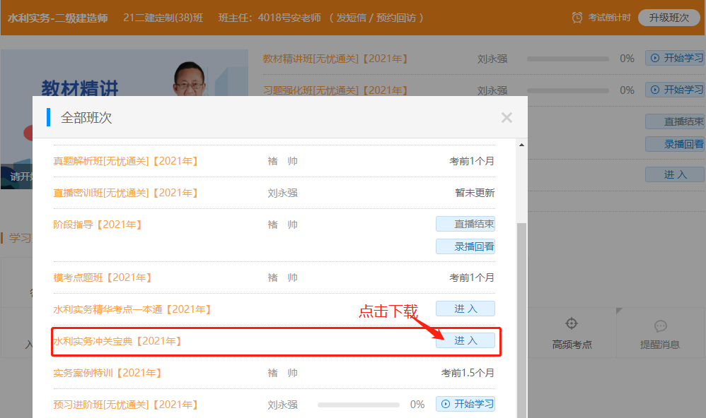 超值精品班學(xué)員也不要著(zhù)急,“我的網(wǎng)校我的家”點(diǎn)擊“班次升級”,可升級為高效實(shí)驗班、無(wú)憂(yōu)直達班,享受更多優(yōu)質(zhì)教學(xué)服務(wù)和考試資料!