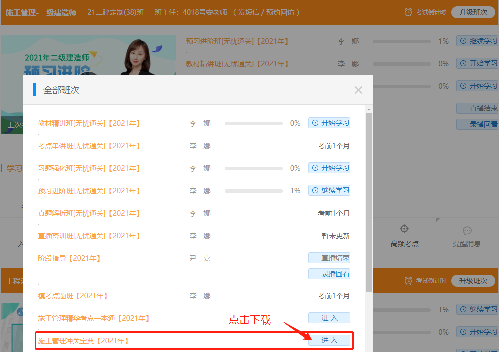 超值精品班學(xué)員也不要著(zhù)急,“我的網(wǎng)校我的家”點(diǎn)擊“班次升級”,可升級為高效實(shí)驗班、無(wú)憂(yōu)直達班,享受更多優(yōu)質(zhì)教學(xué)服務(wù)和考試資料!