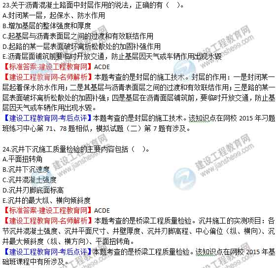 【老師解析】2015年二級建造師公路工程實(shí)務(wù)試題及答案(19-24題)