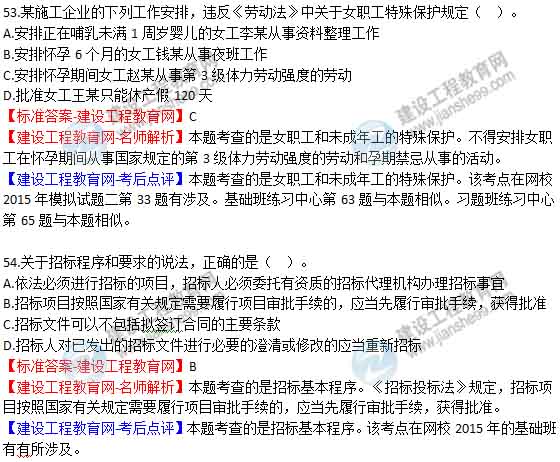 【老師解析】2015年二建法規及相關(guān)知識試題及答案(49-54題)