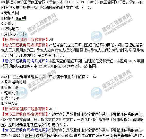2015年二級建造師《建設工程施工管理》試題及答案(第79-84題),由老師【達江】帶領(lǐng)專(zhuān)業(yè)二級建造師考試教研組團隊完成!