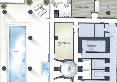第17層~18層是可通過(guò)透明墻壁俯瞰城市美景的貴賓客房;第19層~22層是用于主人和直系親屬居住的主人房;第23層~25層是用于全樓維修和仆人居住的宿舍區;第26層用于機械工程;第27層則用作招待賓客的“娛樂(lè )中心”;而在“安蒂拉”的樓頂將擁有獨立的直升機停機坪。