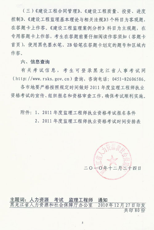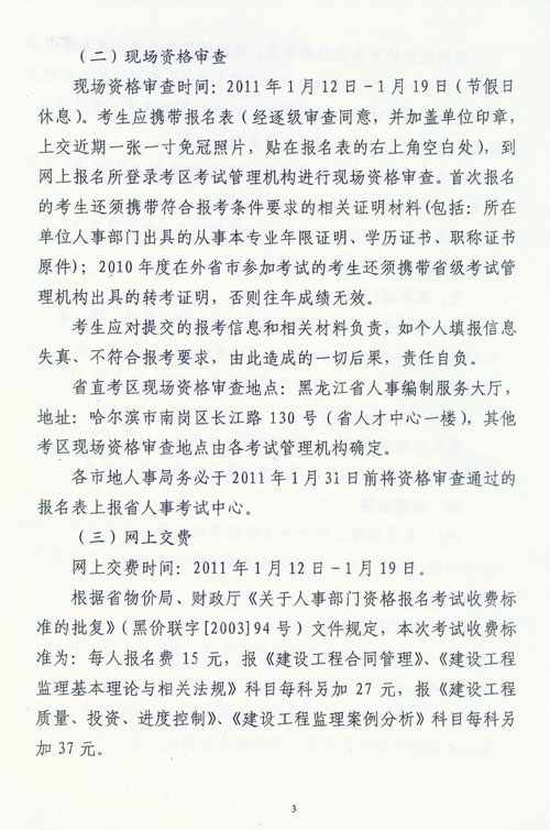 2011年黑龍江省監理工程師報名時(shí)間為2011年1月4日-18日