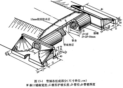 道路下跨長(cháng)度小于8m和單跨長(cháng)度小于5m的構筑物稱(chēng)為涵洞。涵洞有管涵、箱涵、蓋板涵,一般采用管涵形式。