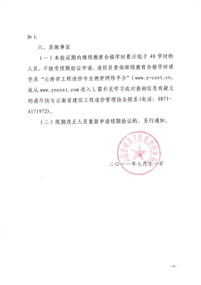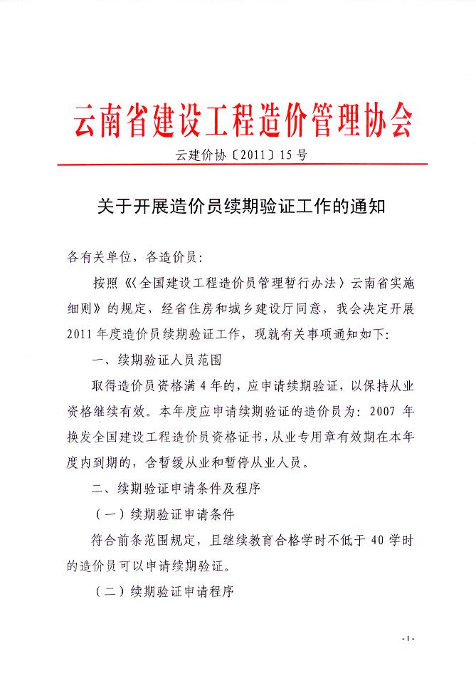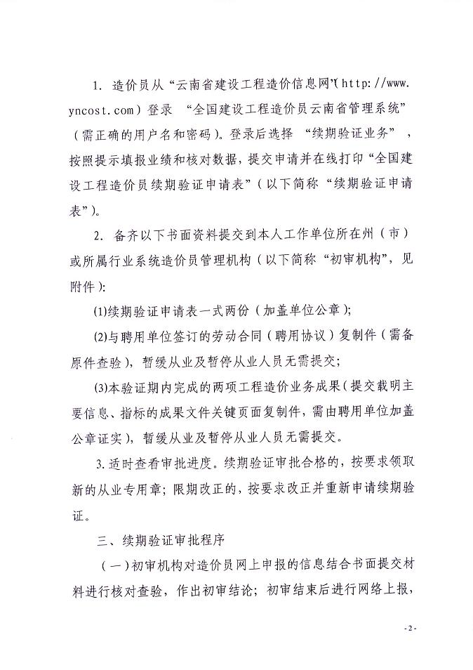 云南省關(guān)于開(kāi)展造價(jià)員續期驗證工作的通知
