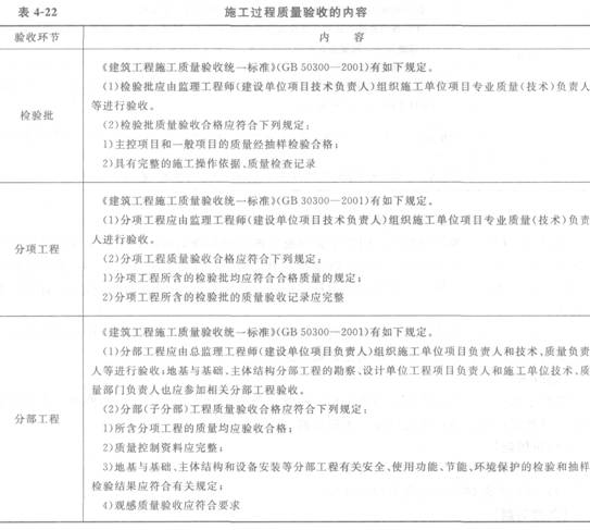 施工過(guò)程質(zhì)量驗收的內容見(jiàn)表4—22.