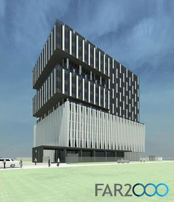 這座建筑有8層,除了辦公空間還有一座390個(gè)停車(chē)位的6層停車(chē)樓以及大堂、會(huì )議廳和咖啡館等。