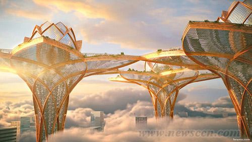 在巴比倫城,曾有一座享譽(yù)世界的空中花園,令人遺憾的是,早已淹沒(méi)在滾滾黃沙之中。最近,設計師Megatropolis設計了一座空中城市,架設于城市的高中之上。這座酷酷的城池創(chuàng )意來(lái)源于蓮花,在形態(tài)上猶如一朵正要開(kāi)放的花朵。
