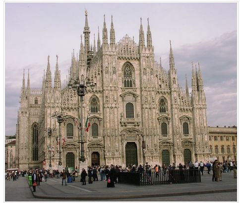 米蘭大教堂是歐洲中世紀最大的教堂,花100年才建成,可供4萬(wàn)人舉行宗教活動(dòng)。教堂全由白色大理石筑成,有135個(gè)尖塔,像濃密的塔林刺向天空,每個(gè)塔尖上有神的雕像。教堂總共有6000多個(gè)雕像,是世界上雕像最多的哥特式教堂。
