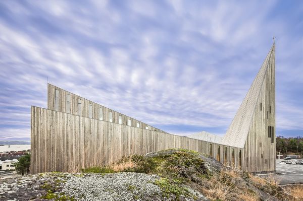教堂通過(guò)神圣和易識別的形象發(fā)揮其功能,不斷上升的屋頂平面強調了教堂的尖塔、圣殿和小禮拜堂的存在。受到挪威當地傳統木板教堂的啟發(fā),建筑師采用了清晰基本的幾何形狀、材料和結構。