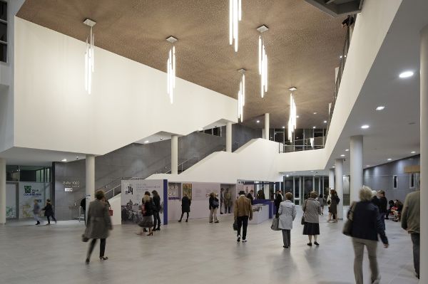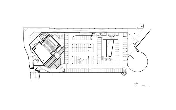 “活動(dòng)”大樓中的兩個(gè)禮堂呈一定角度設置,這一舉措從建筑從形體上表明了對城市理念的支持——邀請人們參與到歡慶活動(dòng)中來(lái)。