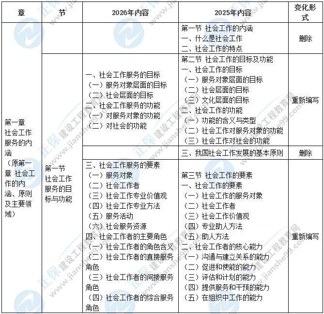 中國(guó)社會(huì)出版社2026初級(jí)社會(huì)工作者考試教材已下發(fā),這次考試教材變化大嗎?網(wǎng)校教研老師進(jìn)行了細(xì)致比對(duì),與2025年的教材相比,2026初級(jí)社工綜合能力科目由原來(lái)的9章變?yōu)楝F(xiàn)在的12章內(nèi)容,整體變動(dòng)較大。