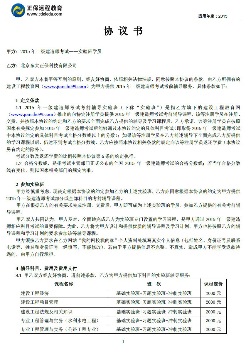 一級建造師“實(shí)驗班”協(xié)議書(shū)