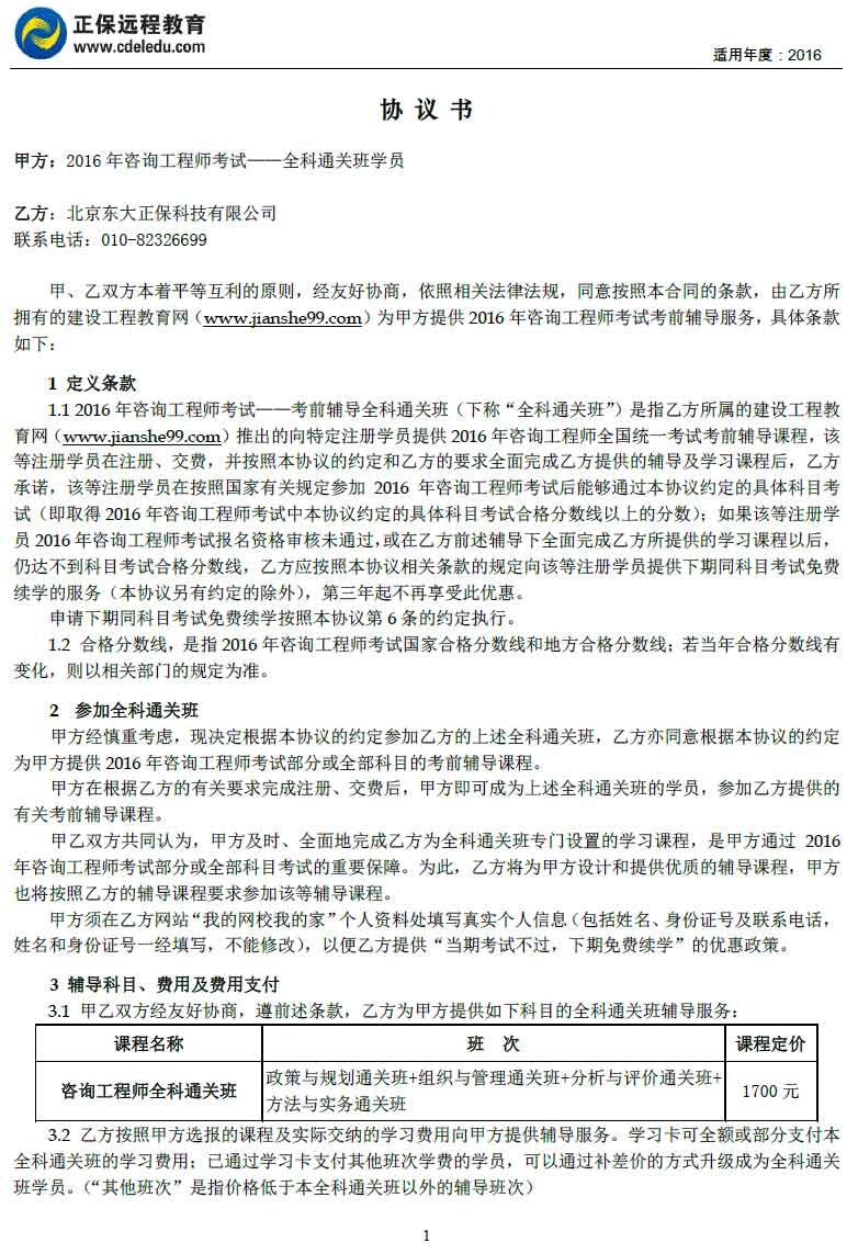 咨詢(xún)工程師“全科通關(guān)班”協(xié)議書(shū)