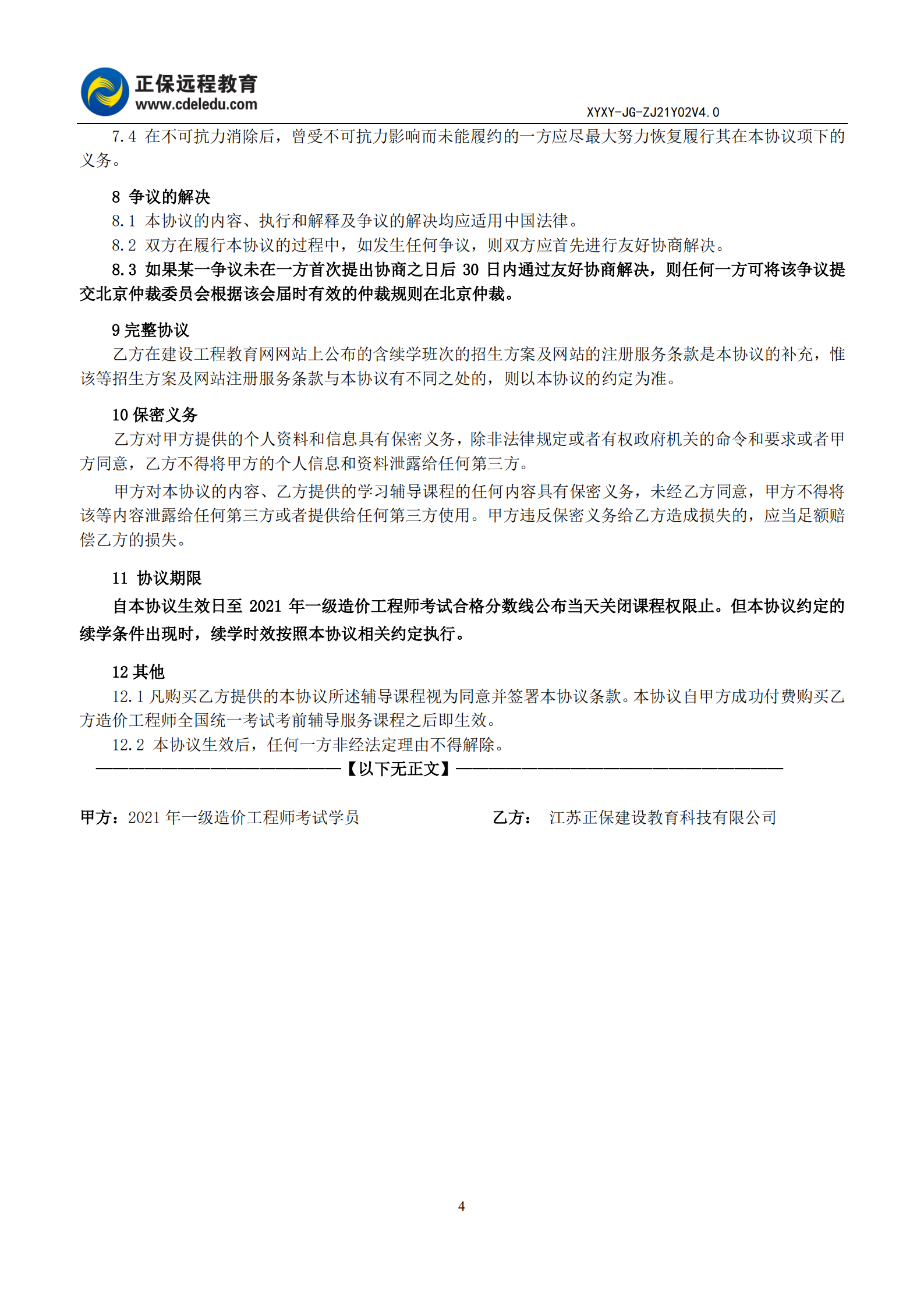 一級造價(jià)工程師協(xié)議書(shū)
