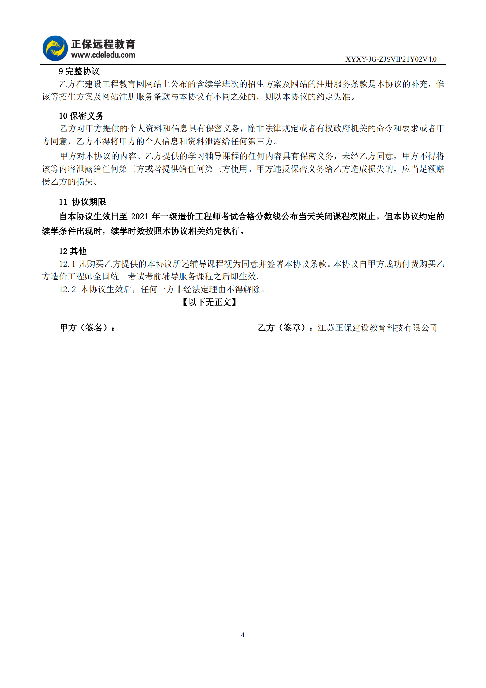 一級造價(jià)工程師協(xié)議書(shū)