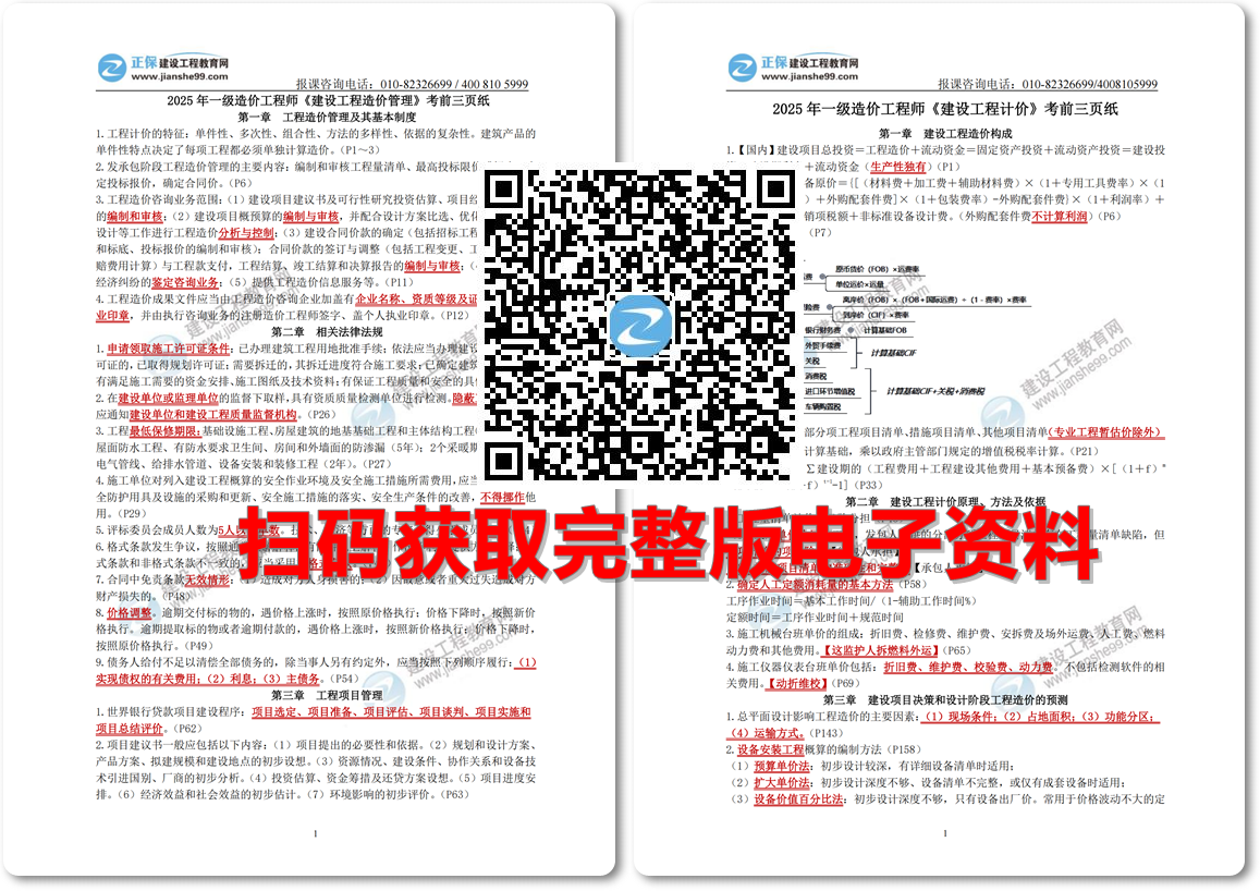 別再猶豫,抓住最后的備考時(shí)機。掃碼免費領(lǐng)取考前三頁(yè)紙,讓它們成為你沖刺備考的加速器。相信自己,通過(guò)努力和科學(xué)備考,你一定能在2025年的一級造價(jià)師考試中取得優(yōu)異的成績(jì)!