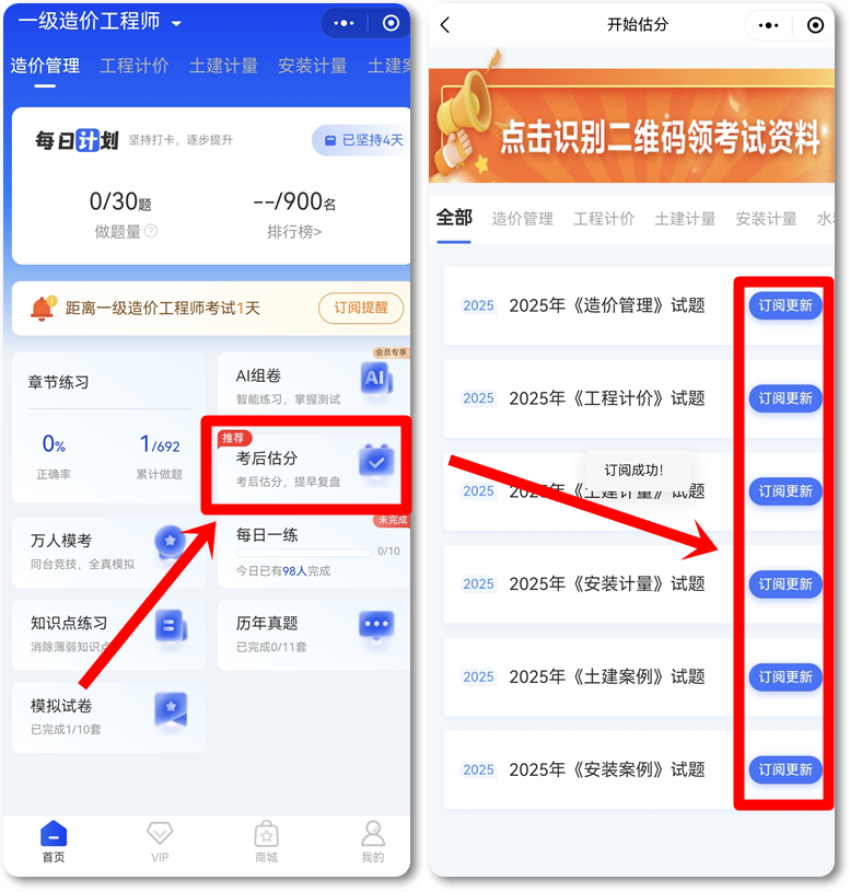 2025年一級造價(jià)師出考場(chǎng),心里沒(méi)底?想知道考得怎么樣?快來(lái)【正保刷題寶】小程序進(jìn)行考后估分!真題持續更新中,配有詳細解析,幫你提前預估分數,做到心中有數??靵?lái)試試吧!