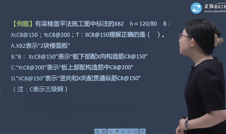 【2025年】根據平法標準圖集板塊集中標注注寫(xiě)為XB2 h=120 B:Xc8@150,Y8@200 T:18@150,下列表示其含義的說(shuō)法,正確的是()。