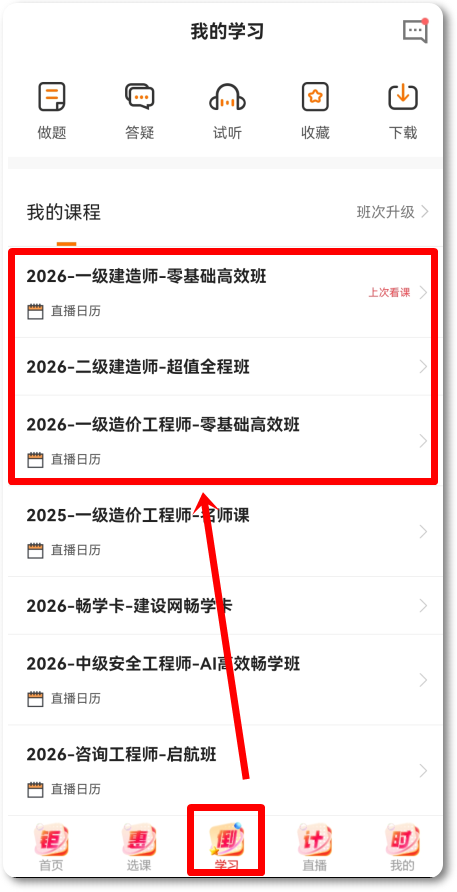 2026年建設工程教育網(wǎng)【5年暢學卡】APP端開課流程