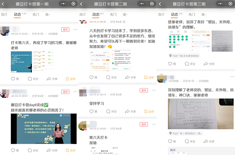 這已經(jīng)是娜豆打卡營(yíng)第五期招生了,前面的四期活動(dòng)都獲得了學(xué)員的好評,大家跟李娜老師的進(jìn)度一起學(xué)習,并且互相監督,互相解答學(xué)習中遇到的問(wèn)題,讓枯燥的學(xué)習有了樂(lè )趣。
