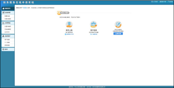 登陸成功后點(diǎn)擊“進(jìn)入我的大廳”按鈕,進(jìn)入申報頁(yè)面。