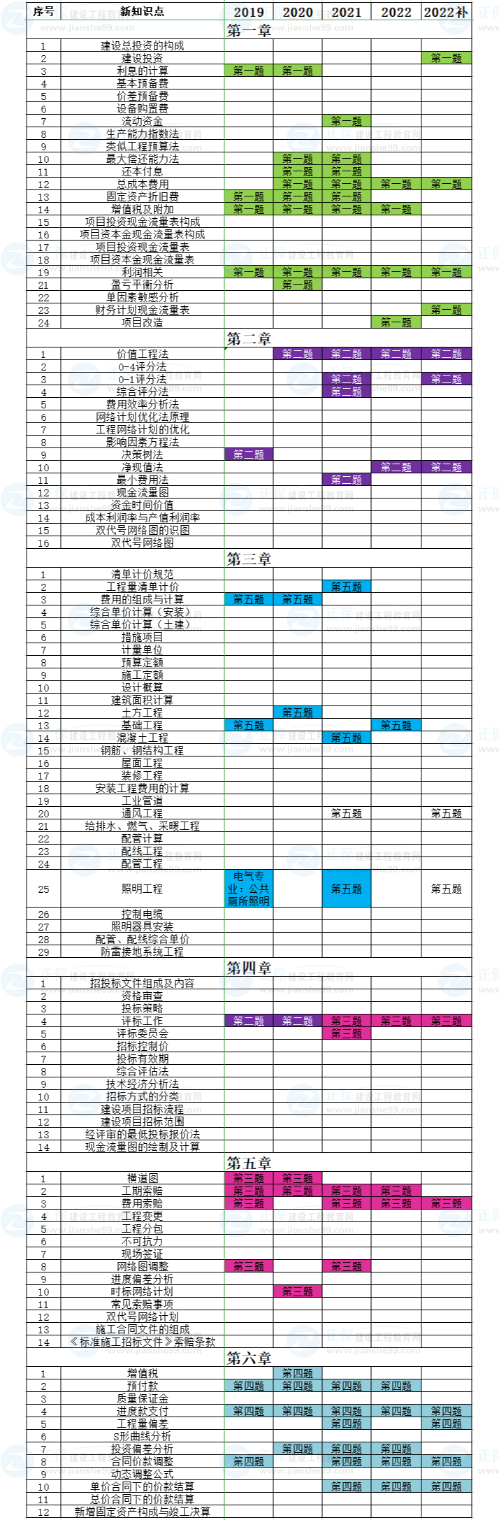 2019-2022年一級造價(jià)師土建/安裝分值分布匯總: