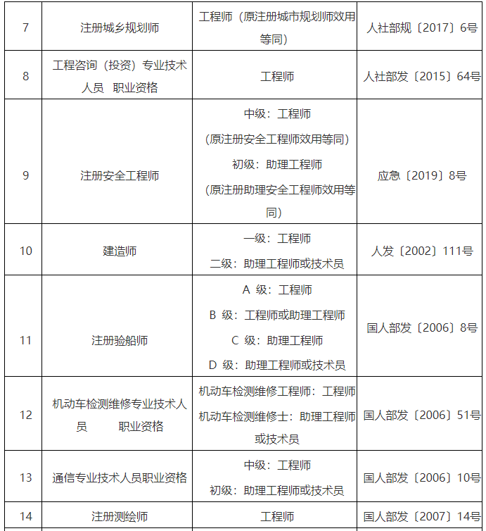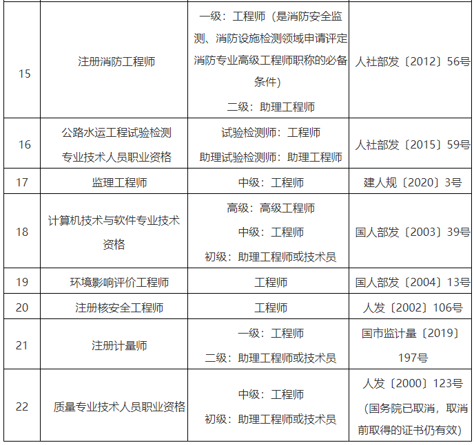 第二十六條工程技術(shù)人才取得的工程領(lǐng)域專(zhuān)業(yè)技術(shù)類(lèi)職業(yè)資格,可對應相應層級的職稱(chēng)(見(jiàn)附件),并可作為申報高一級職稱(chēng)的條件。