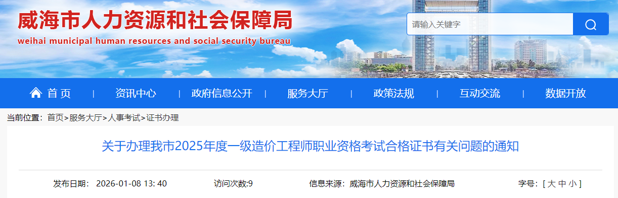 山東威海2025年度一級(jí)造價(jià)工程師職業(yè)資格考試合格證書有關(guān)問題通知