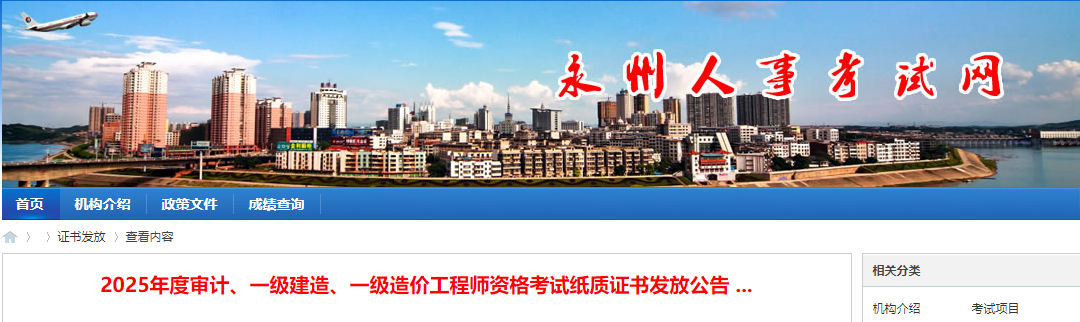 湖南省永州2025年度一級造價工程師資格考試紙質(zhì)證書發(fā)放公告